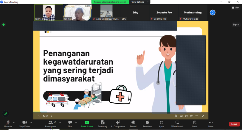 Kuliah Pakar dengan tema “Penanganan Kegawatdaruratan Yang Sering Terjadi di Masyarakat” yang dilaksanakan secara daring.